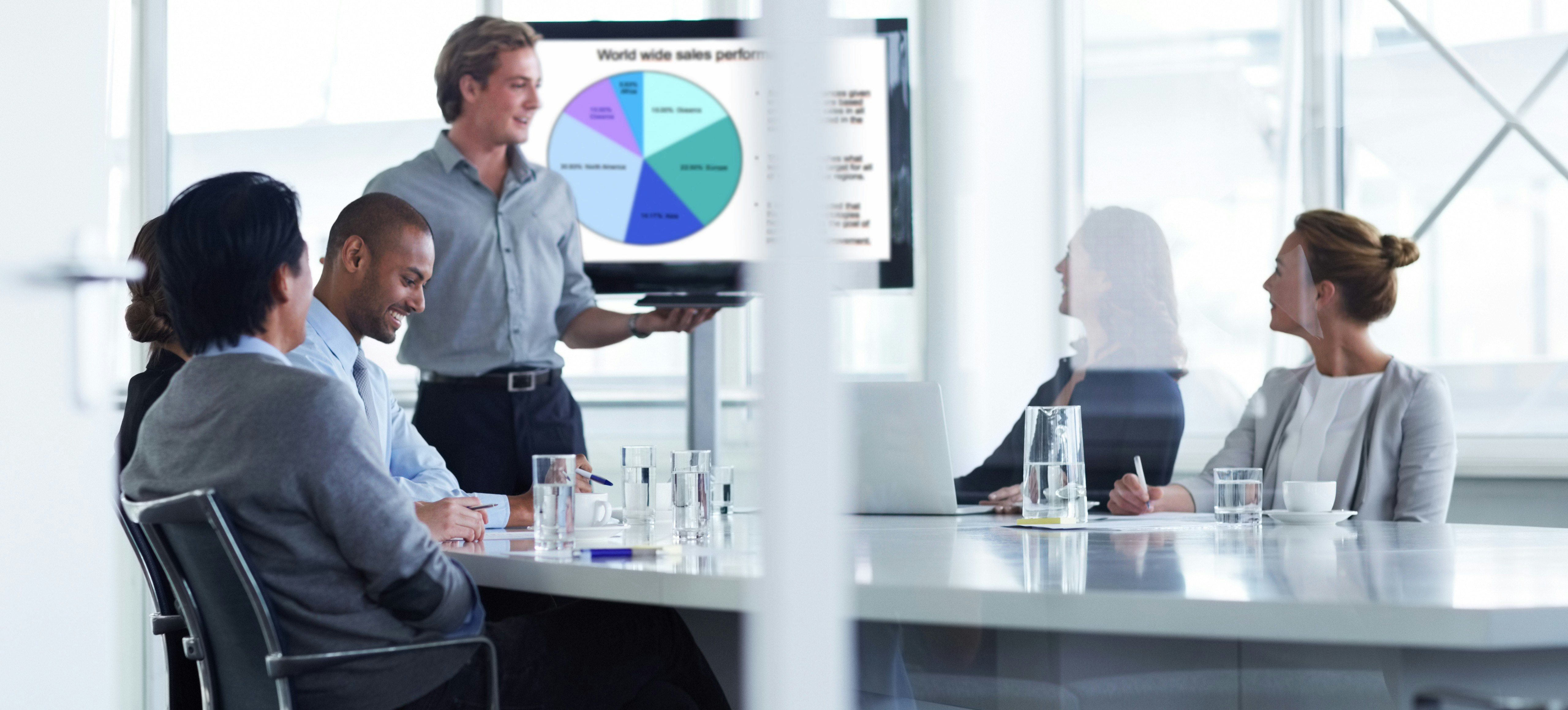 [Featured image] A working group sits at a conference table and discusses display advertising strategy.