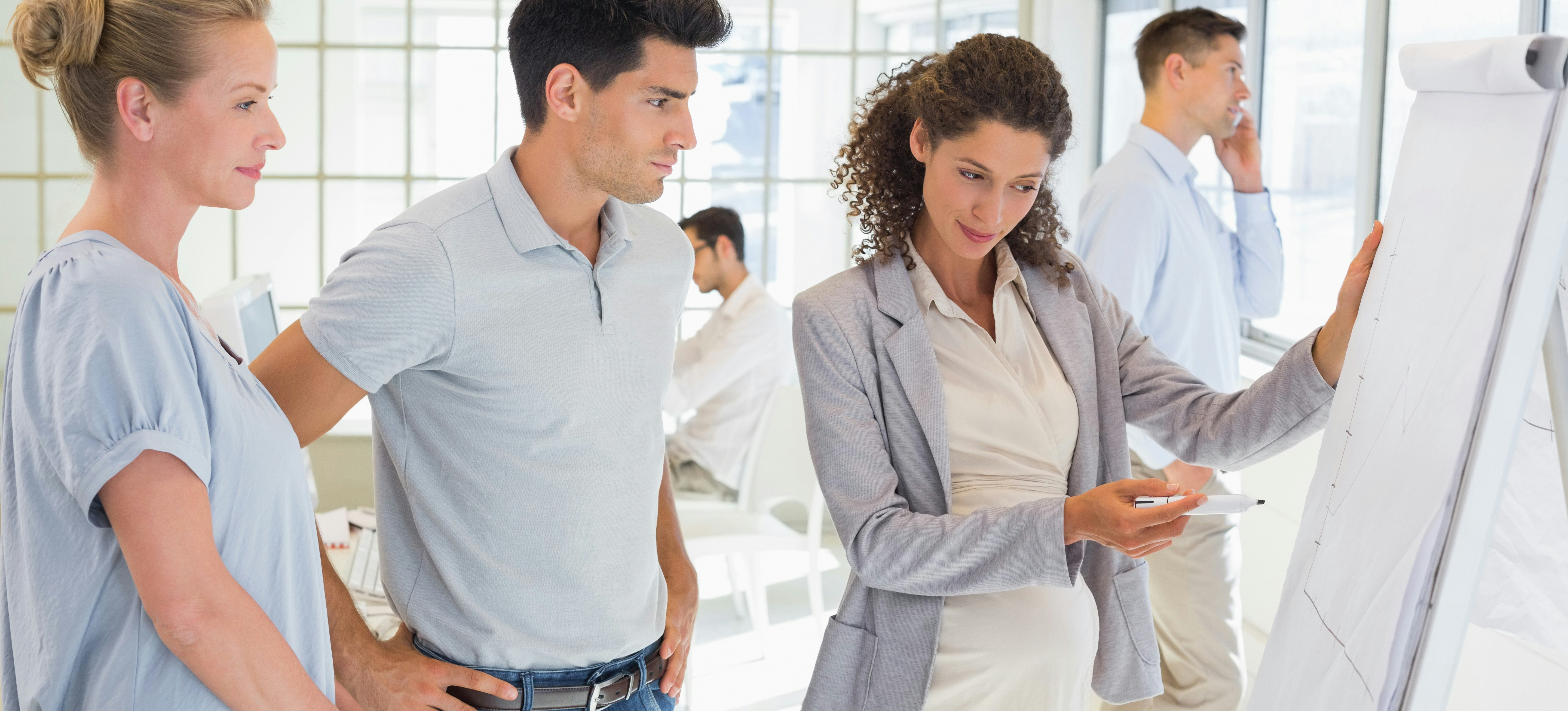 [Featured Image] A cybersecurity project manager, one of the many non-technical cybersecurity jobs, presents some information to their team.