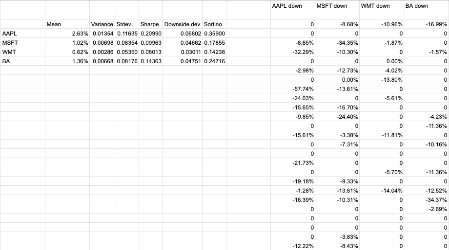 • Use Sharpe and Sortino Ratios to compare performances of different stocks