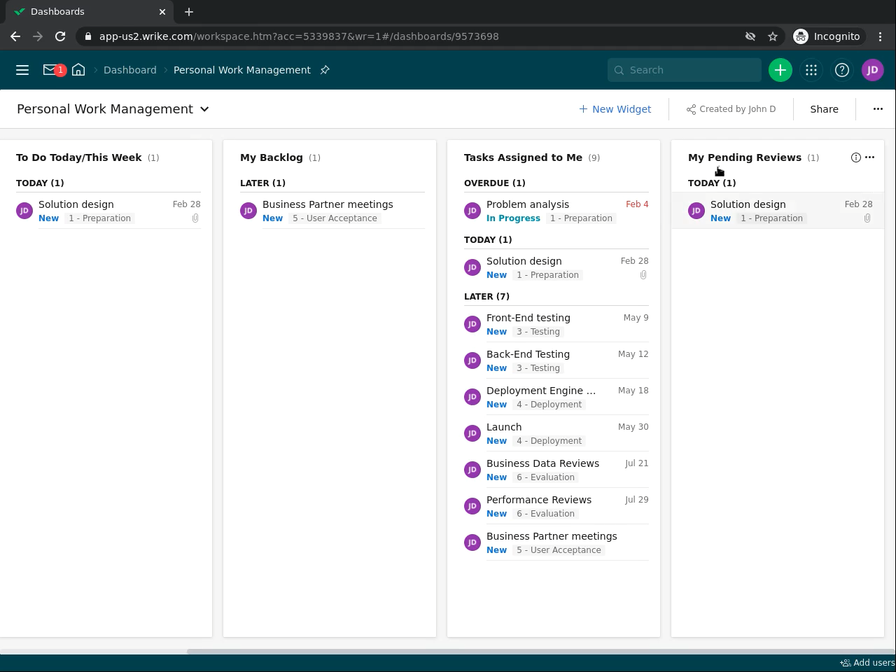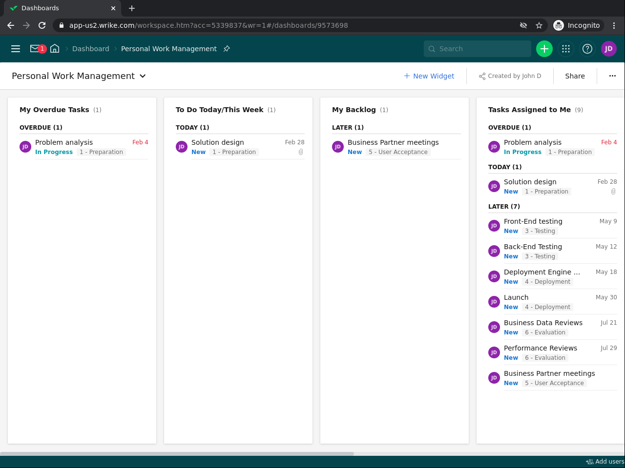 In this 2.5-hour long project-based course, you will learn how to create and manage custom dashboards in Wrike to plan, execute and track both your personal work, team actions and multiple projects. You will use system and custom widgets, and create widgets directly from your tasks filtered list views.