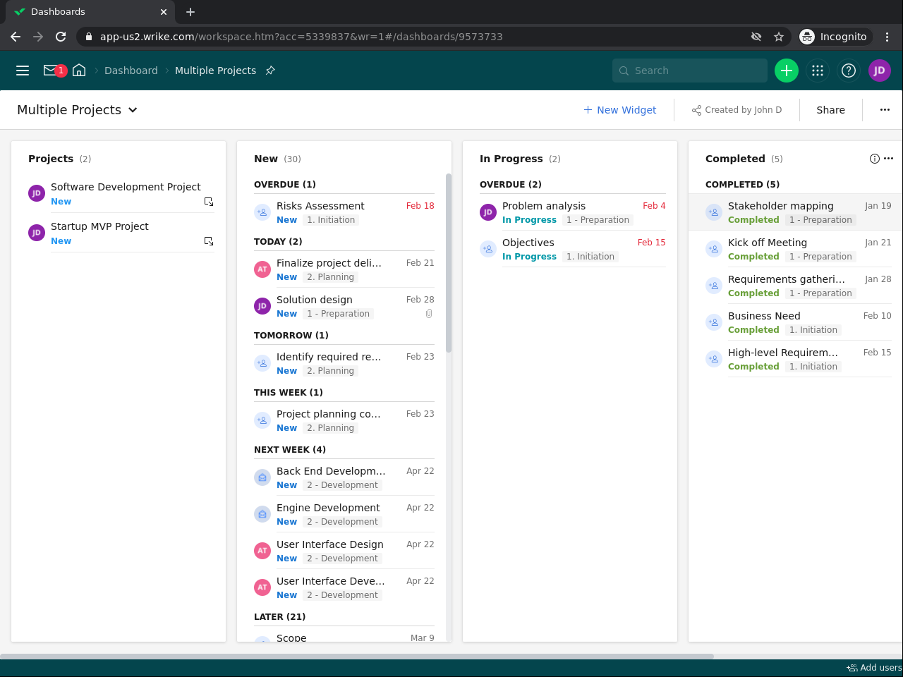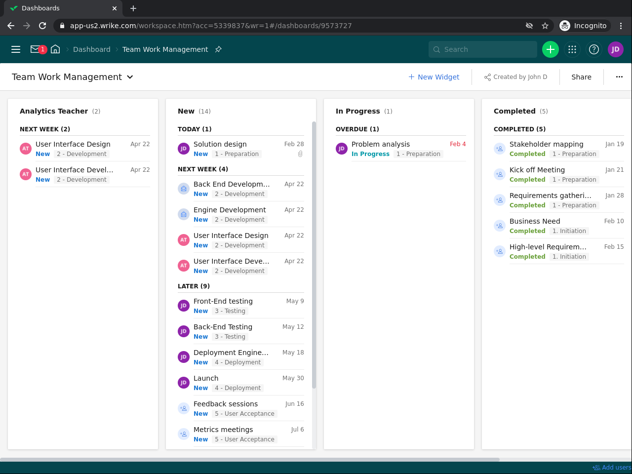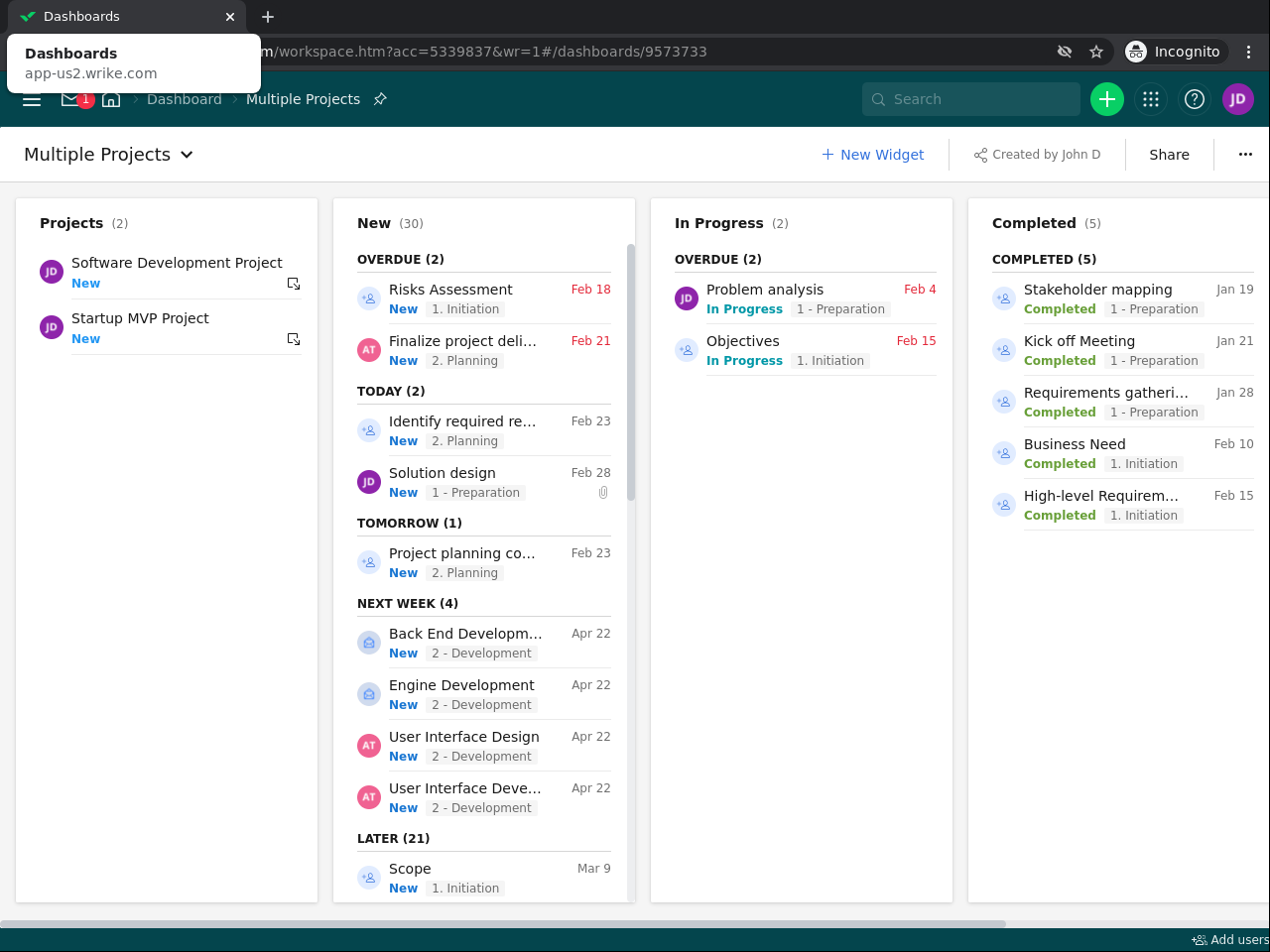 Create and manage a project dashboard with Wrike