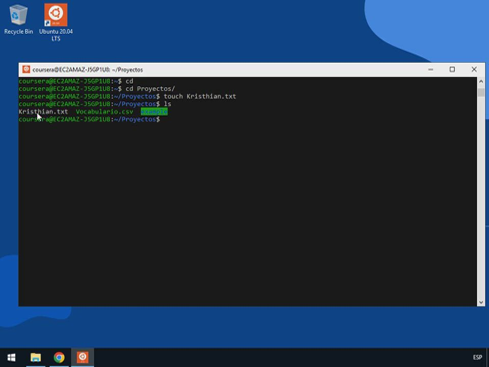 5. Utilizar touch, copy, mkdir y rm para crear y eliminar archivos y directorios. (7 min)
