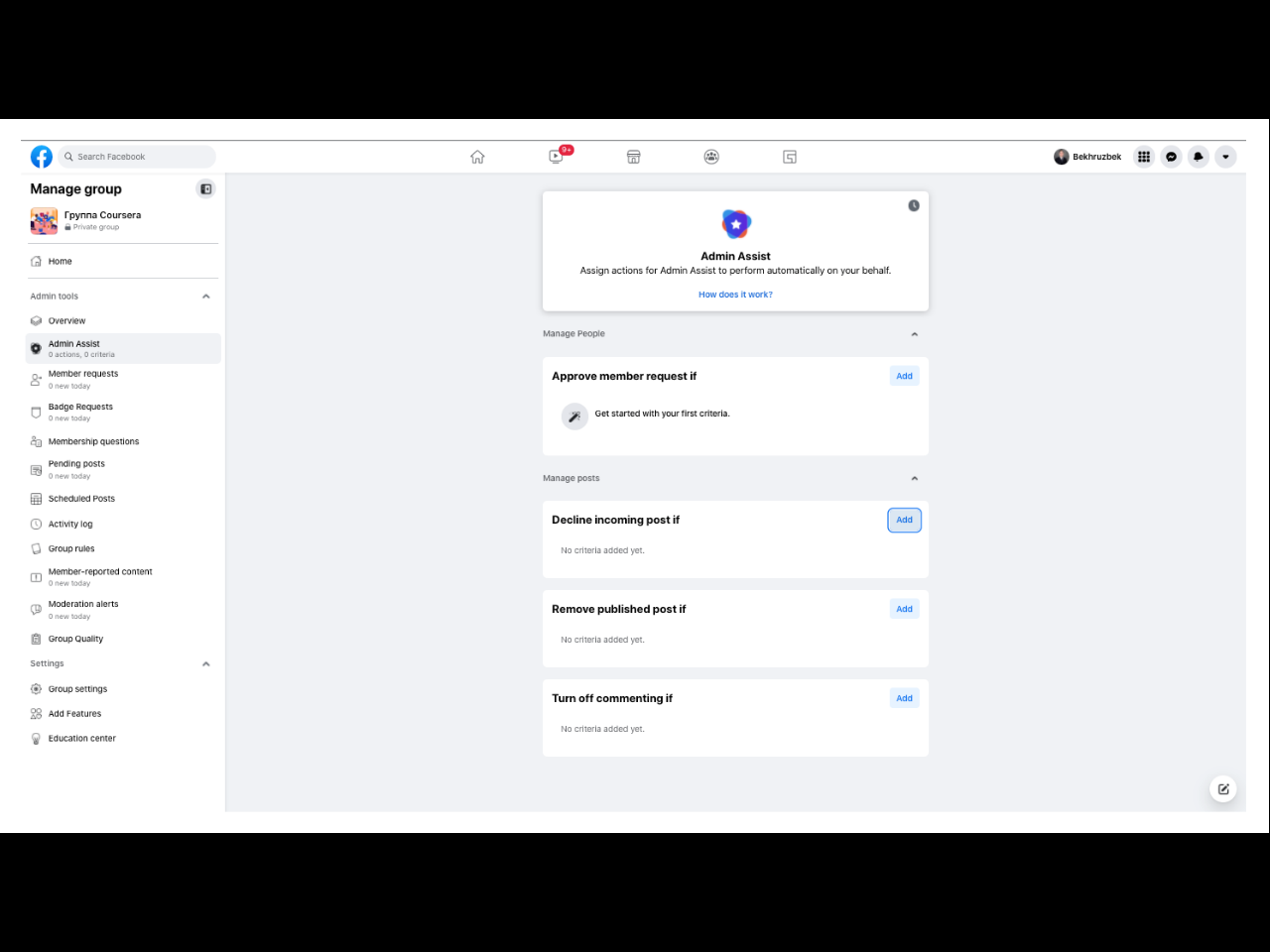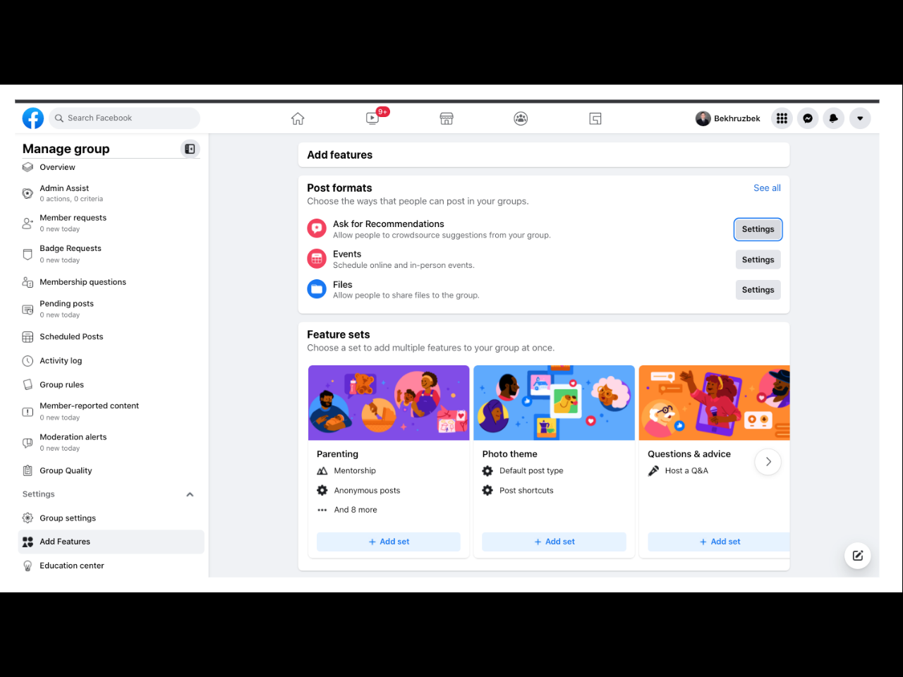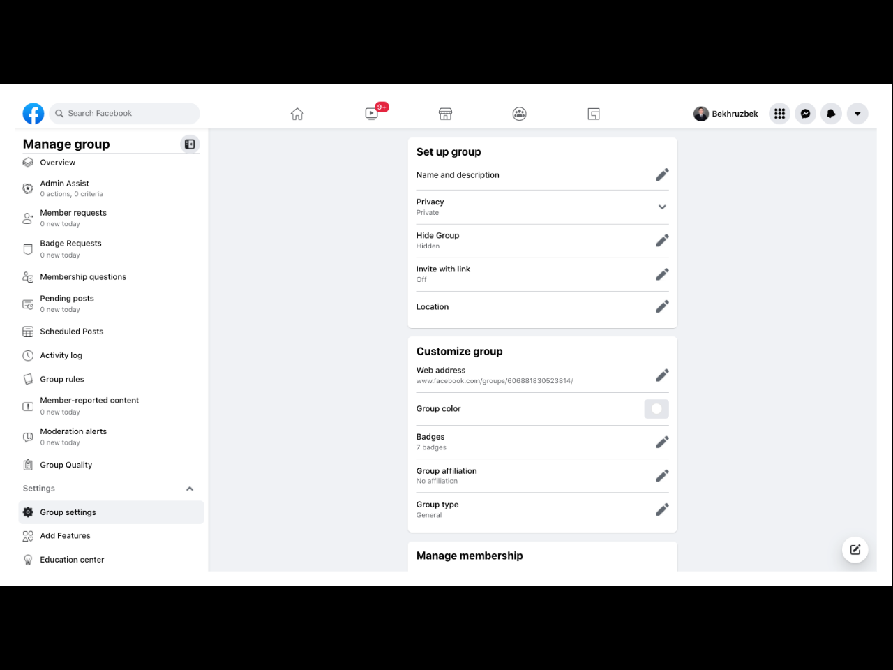 • Настройка группы в Facebook