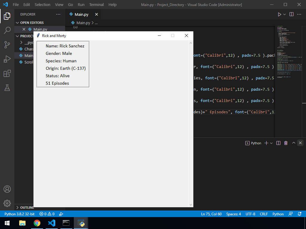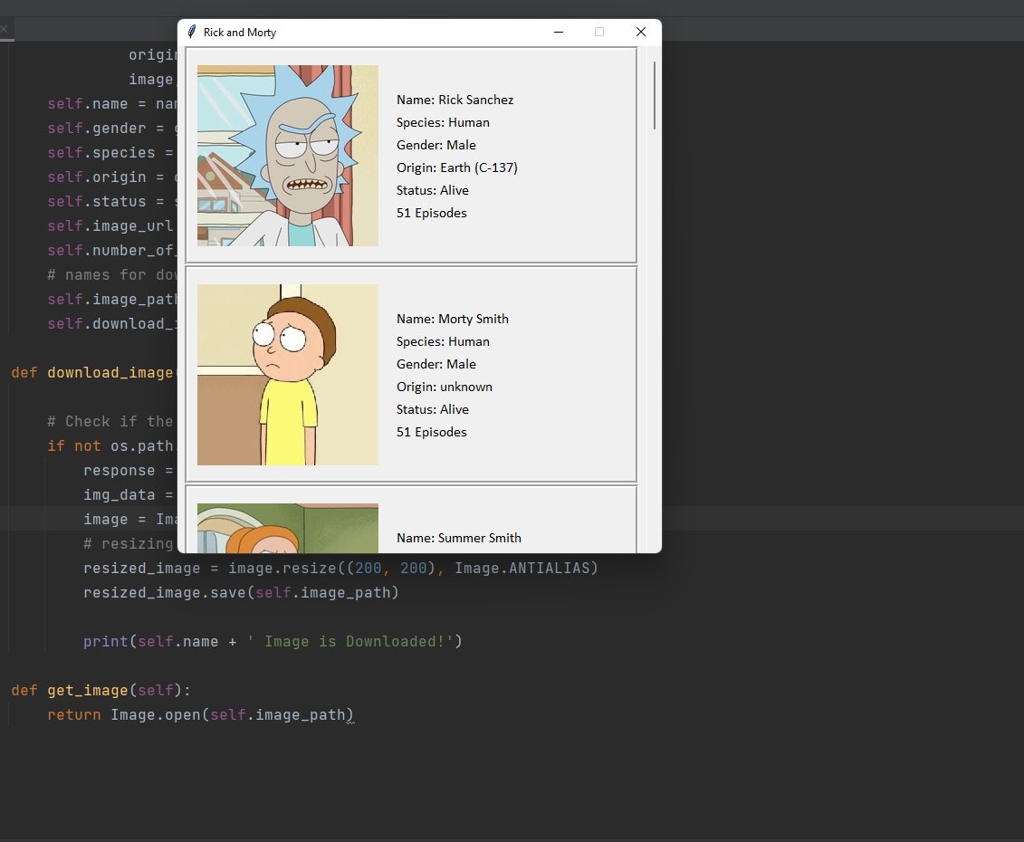 By the end of this project, you will learn how to work with JSON data in python. we will learn what is an API and how we can access the data using HTTP requests in Python. We are going to retrieve the data and use TKinter module in python to develop a desktop application for browsing characters rolled in Rick and Morty series. During this project, you will learn what a JSON API is and how it works. you will learn about how to send an HTTP request to the server to retrieve the JSON data and at the end, we are going to learn how to use this data to develop a desktop application using python and TKinter.