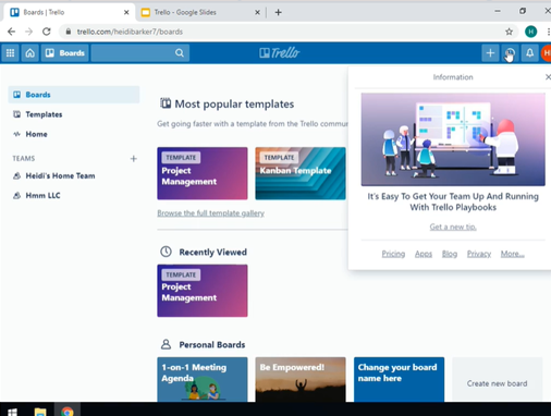 Familiarize yourself with the options offered by Trello to create your own Board.