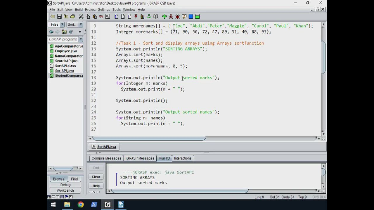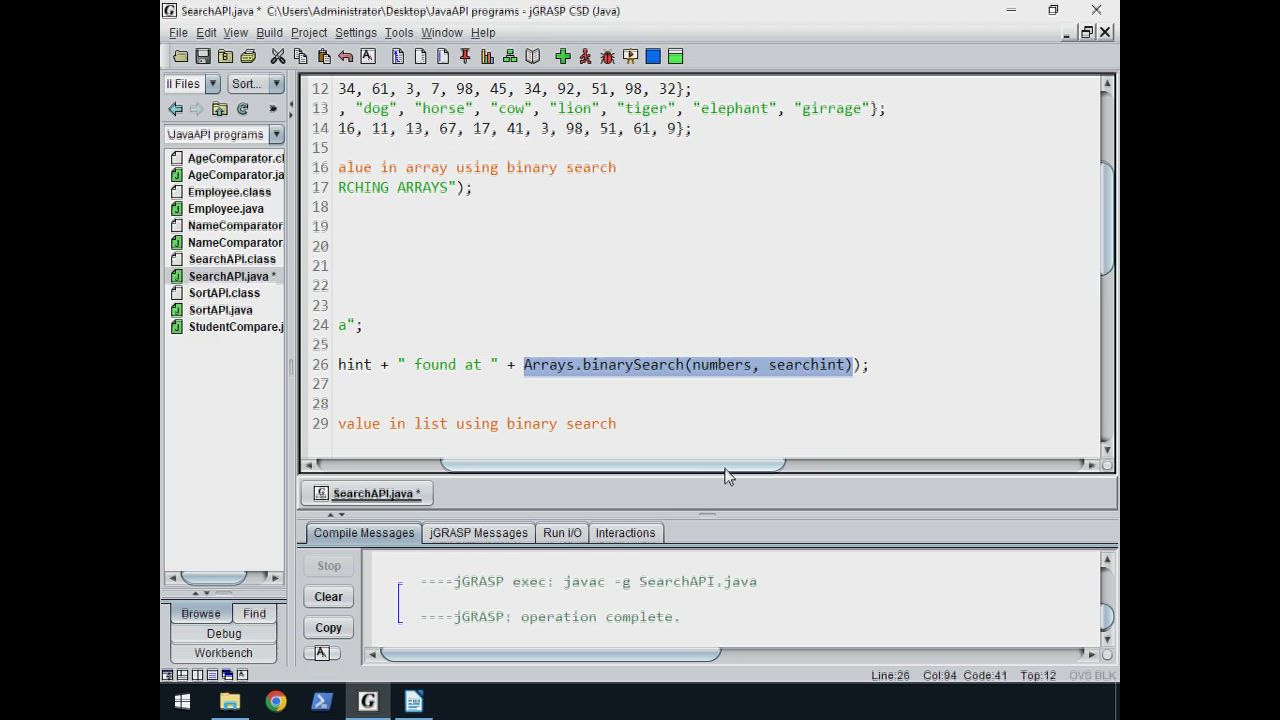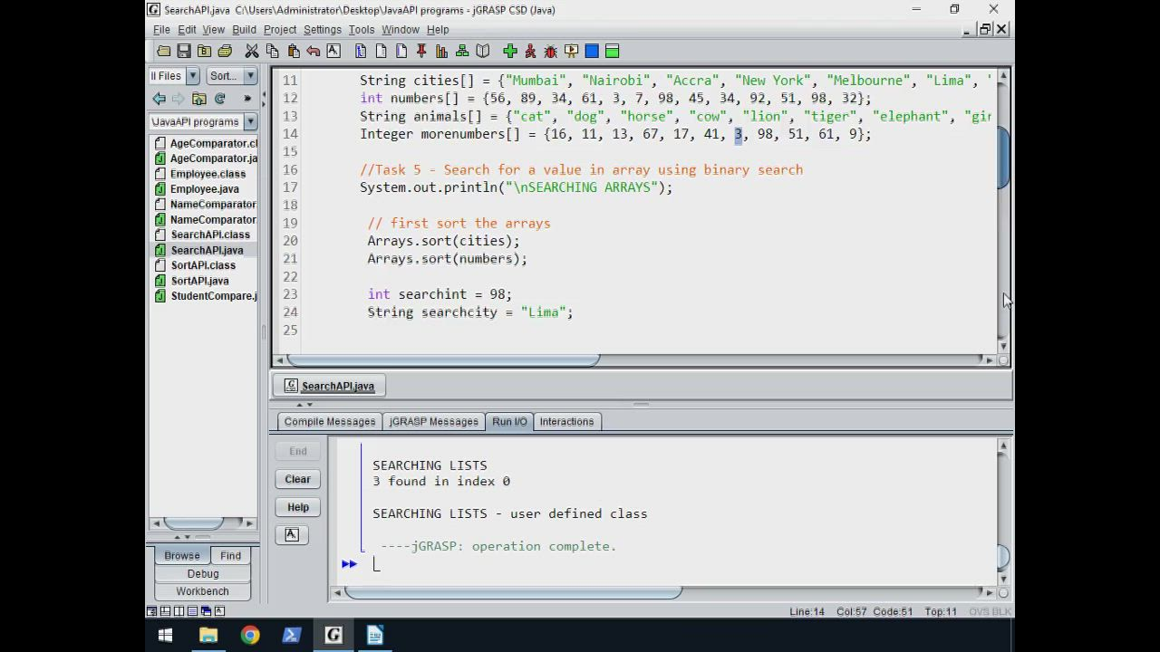 use functions and interfaces in the Java Collections API to sort and search for values in arrays and lists